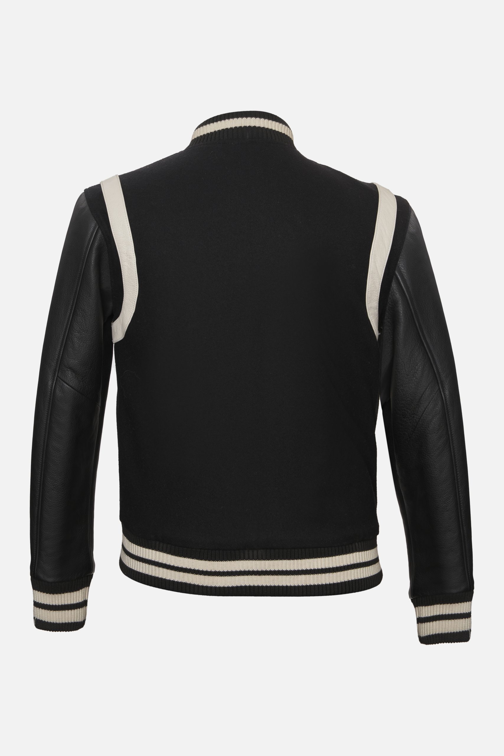 AE – Leather Varsity Jacket – Black & Off-White