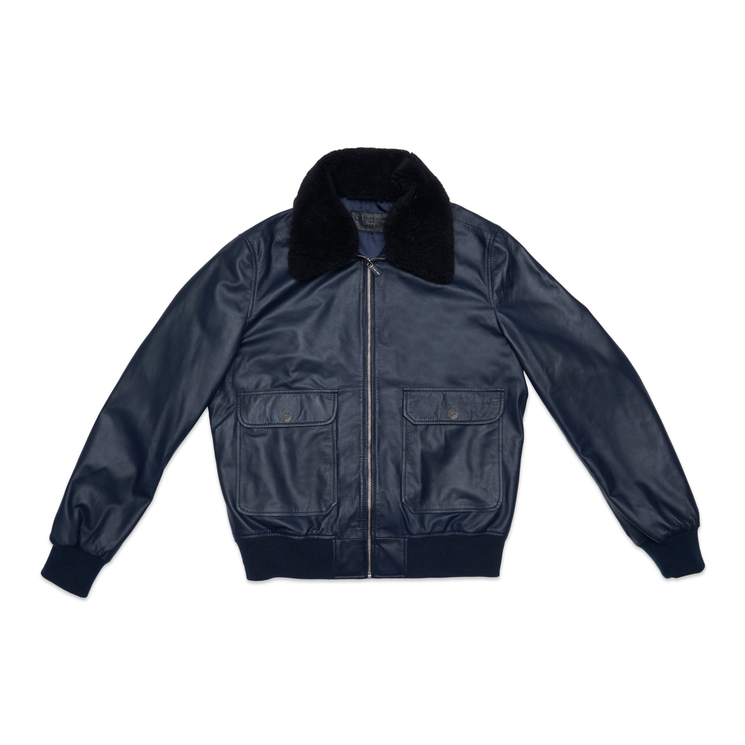 Hugo – Bomber Leather Jacket – Navy/Black